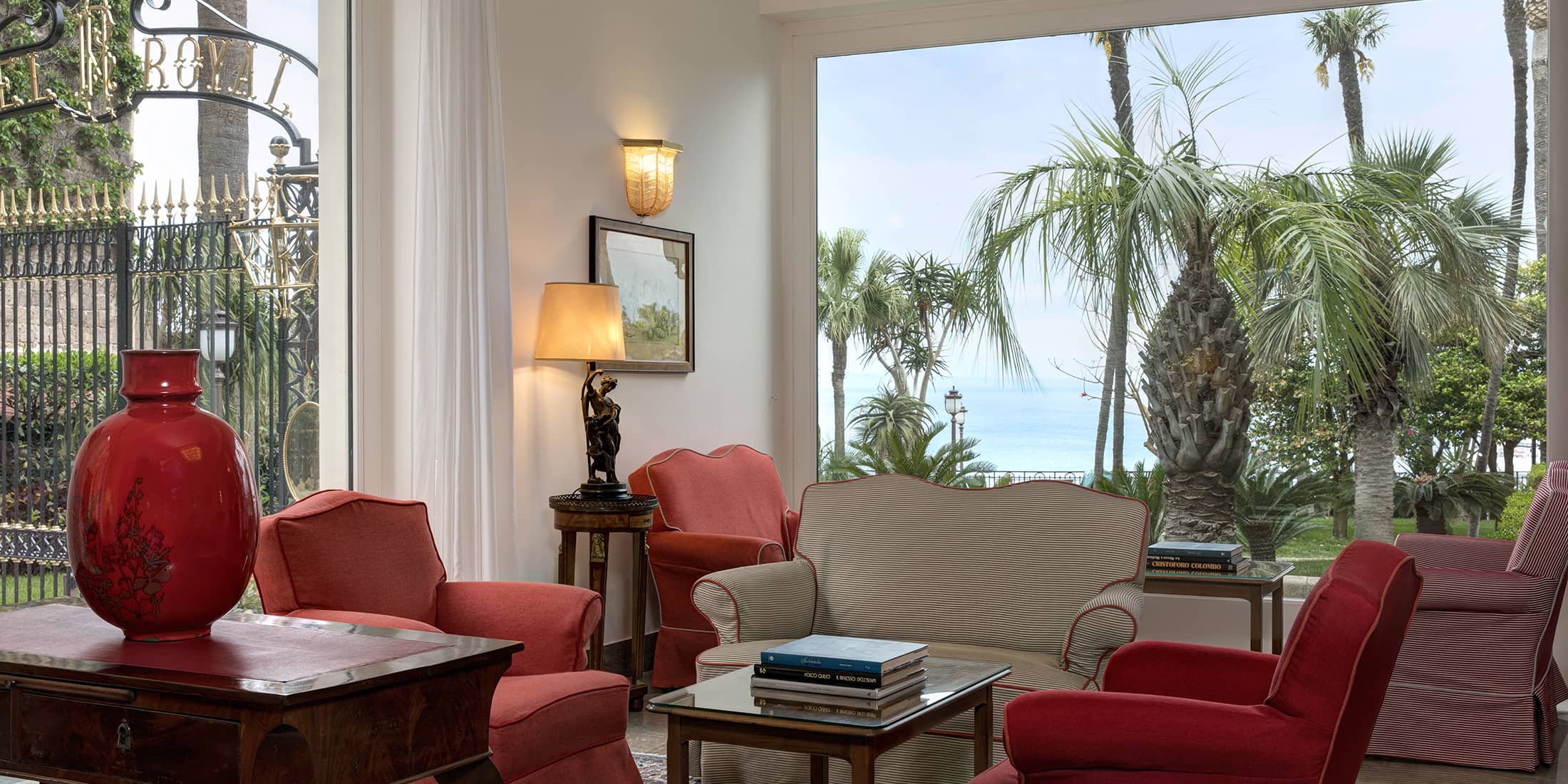 Das historische Grand Hotel Royal verfügt über einen charmanten Park mit einer großen Vielfalt an exotischen und mediterranen Pflanzen: Zitronen- und Orangenbäume, Palmen, wunderschönen Kamelien. Das Grün, welches unser Luxus-Hotel umgibt, ist eine Oase der Ruhe, wo die Gäste Stunden der Entspannung und Freizeit zu genießen, und gesellige Stunden bei einem guten Drink verbringen.